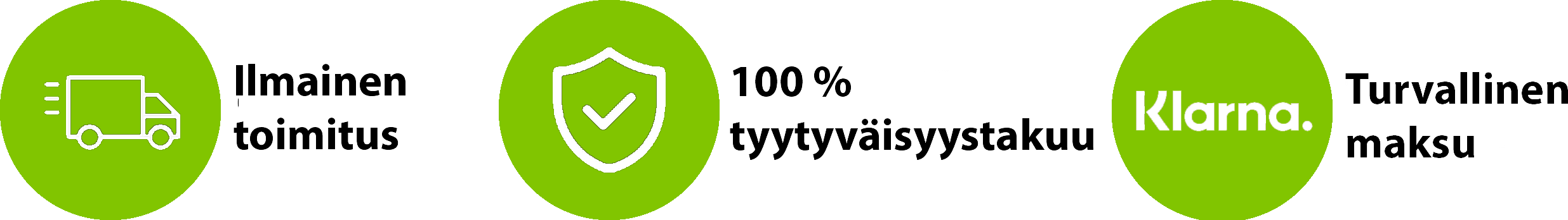 Tarjoamme kaikille asiakkaillemme 100 % tyytyväisyystakuun ja 14 päivän rahat takaisin -takuun.